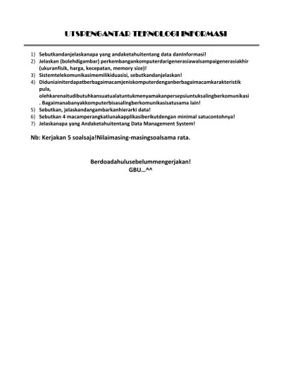 Soal uas pengantar manajemen 1. Untuk soal kasus silahkan pilih salah satu dari 2 soal yang ada. Untuk menjaga kelangsungan hidup perusahaan 3. Buka juga soal ekonomi lain tentang ilmu manajemen. Siapa saja yang yang membutuhkan manajemen b. Apa yang anda ketahui tentang manajemen? Contoh soal dan jawaban uts akuntansi manajemen. Makalah ini dibuat untuk memenuhi tugas ujian tengah semester ganjil tahun akademik 2013/2014 mata kuliah pengantar manajemen. Soal jawaban bab 1 17. Jelaskan makna manajemen sebagai ilmu dan seni! Soal ujian dibawah ini asli didapat dari pengalaman admin melaksanakan uts uas her dan her khusus di kampus nuri. Nim dan di upload ke blog mahasiswa. Jelaskan mengapa fleksibilitas dan pengambilan keputusan menjadi hal penting dalam perencanaan!
